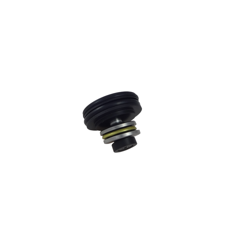 Hlava pístu je vyrobena z konstrukčního plastu TECAFORM jinak také známý jako POM. Na CNC obráběcím centru. Hmotnost této hlavy pístu je pouze 8,7g. Na čelní straně je vyvrtáno 9 otvorů. Těmito otvory při stlačování proudí vzduch, který roztahuje těsnící O kroužek a ten lépe utěsní prostor mezi hlavou pístu a válcem.