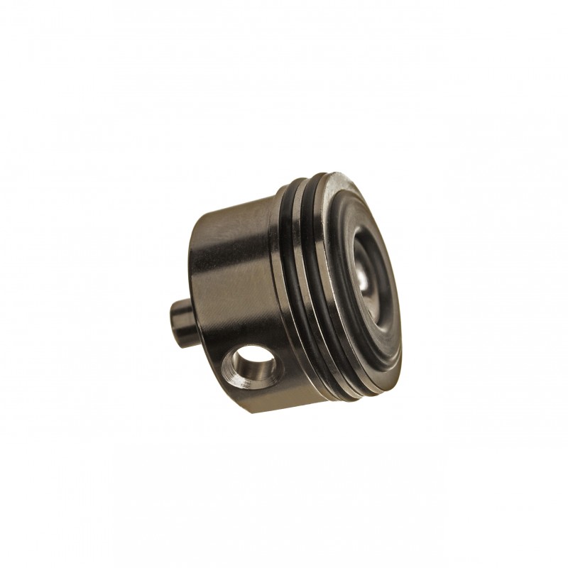 Hlava válce je vyrobena z duralu EN AW 6012. Na CNC obráběcím centru. K utěsnění prostoru mezi hlavou válce a válcem slouží 2 těsnící kroužky. První těsnící kroužek má nepatrně menší průměr pro snadnější nasazení a druhý kroužek je větší pro dokonalé utěsnění.