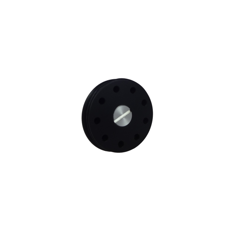 The piston head is made of a structural plastic TECAFORM also known as POM on the CNC machine. Nine holes are drilled on the front side.The air stream flows through these holes during compression thus expanding the O-ring which provides for better sealing of the space between the piston head and the cylinder.